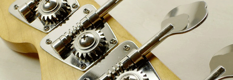 The Bass guitars of the domestic Japanese Squier line are (unlike some domestic stratocasters) immediately identifiable from the more vintage accurate export models by the lack of a rivet through the top of the tuner stem (see pic above) , and a different shaped tuner blade and back plate (see photo further down this page) , though the Fender versions (like the export Squier JV's) are period correct (see again above picture).