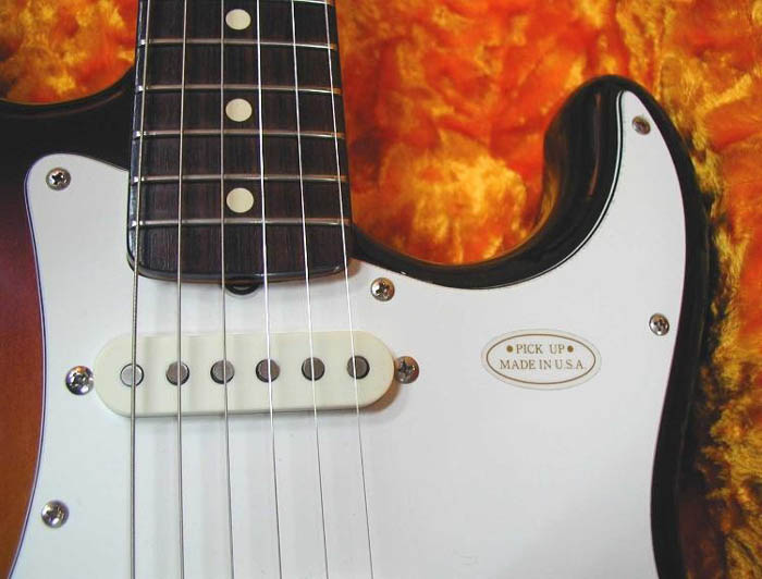 orginal USA Fender delar (mikar, plektrumskydd och kontroller .... se ovan), andra Stratocaster