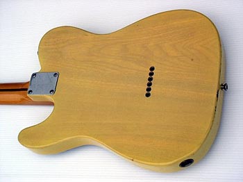 Ovan: Några närmare bilder av TL'52-95 kroppen nitrocellulosans yta och svart fiber bakelit plektrumskydd.
