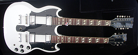 SG Elite Hals: En bit Mahogny, Ebony greppbräda med binding och block inlays, crown inlay på huvudet. Kropp: Mahogny. Mikrofoner: 2 Spotlight humbuckers. Hardware: Gold. Stall: TP6 (finetuners) stop tailpiece, Nashville tune-o-matic (Schaller), looking nut. Färg: Pearl white.