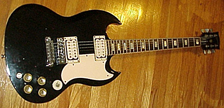 kom Gibson med sin Hi Tech SG Special 400 med 2 singlecoil i