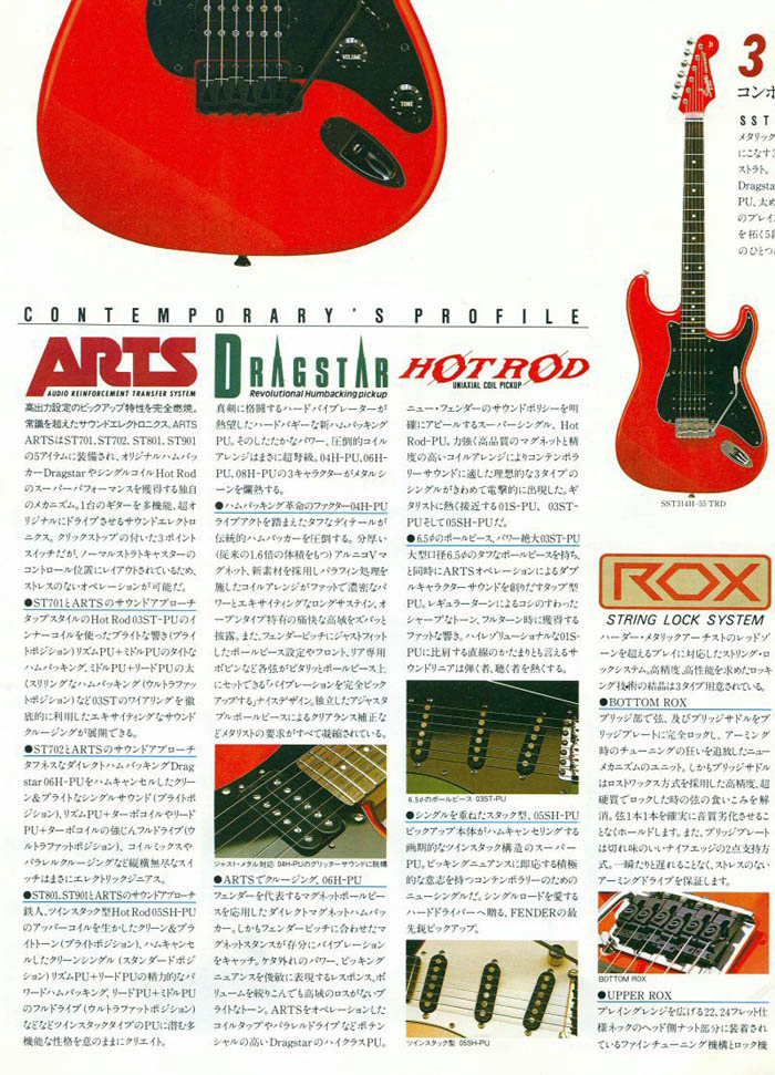 Nedan visas några sidor från en 1983 japanska Fender katalog "Twang, många olika mikkombinationer.