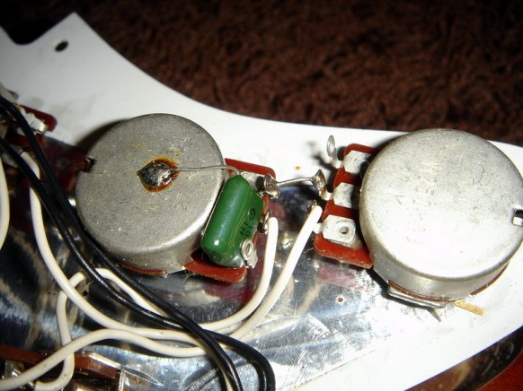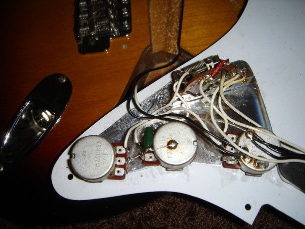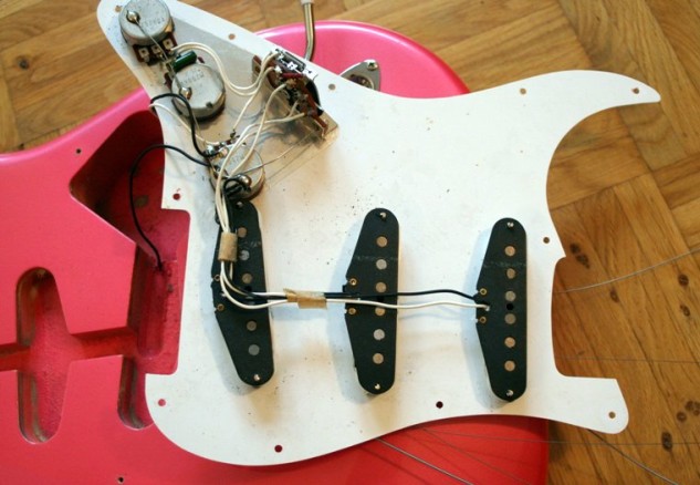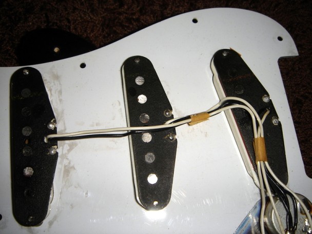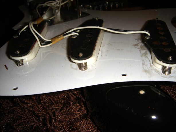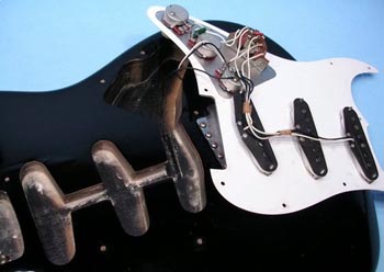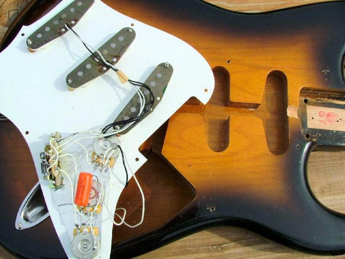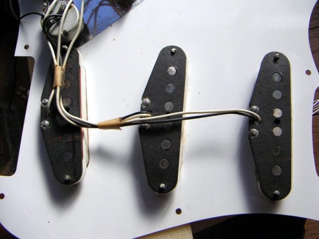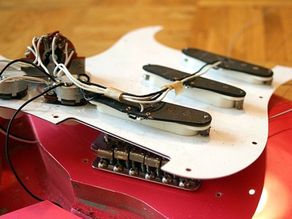 orginal USA Fender delar (mikar, plektrumskydd och kontroller .... se ovan), andra Stratocaster