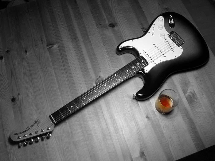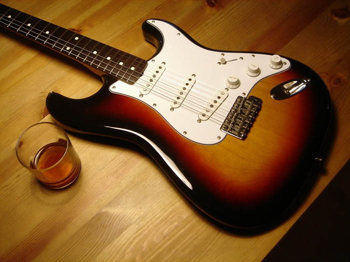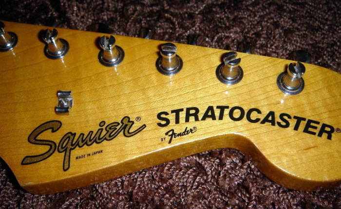 Bilden nedan visar två domestic Fender modeller och en Squier .
