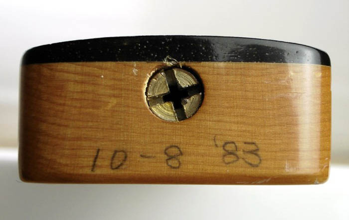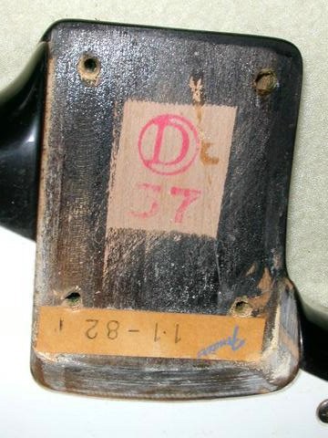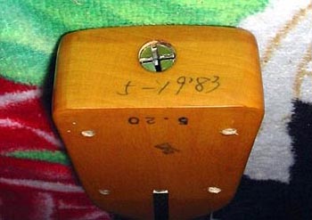 Ovan vänster : NoteraJV stämpeln med fyra siffror i stället för de vanliga fem, Neck date till höger 5-19-83 (19 maj 1983).