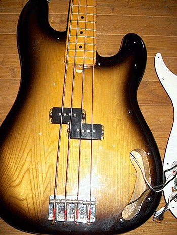 Ovan: Två bilder av en tidig "57 vintage" Precision Bass JV08598