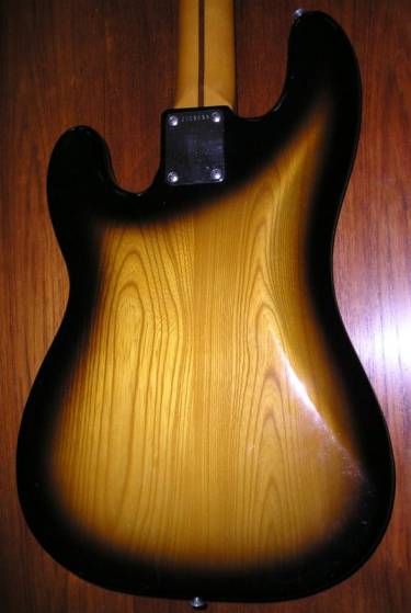 Bilden till Vänster: Truss rod justeringsanordningen och datumet på halsen. Ovanför centrum: Neckplate med tidigt JV serienummer. Och bilden ovan till höger: En "57 vintage Precision Bass i två tones Sunburst. JV Precision basar fanns med antingen 3 skikt tortie eller vitt plektrumskydd. De flesta "62 modeller hade tortie plektrumskydd monterat, och de flesta" 57 modeller hade vitt vilket, men det är ännu inte klart för mig om detta var standard för varje modell, 57-modellen på bilden med en tortie plektrumskydd är väldigt ovanligt.