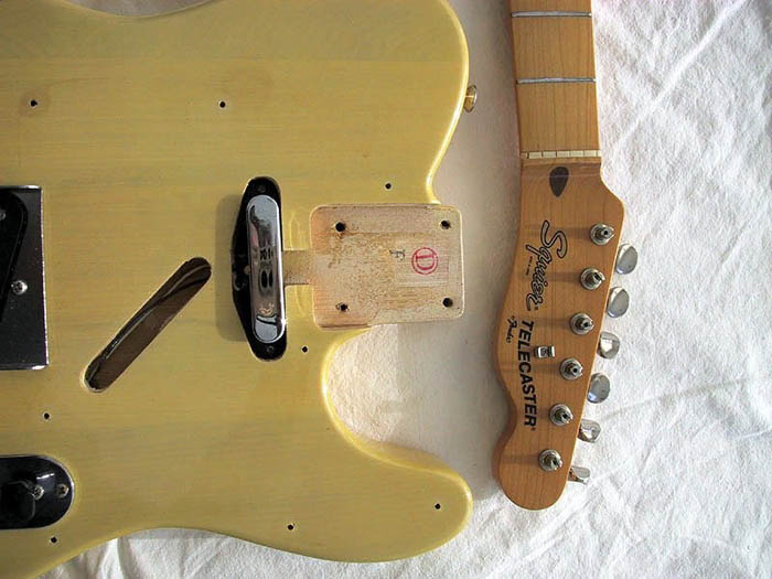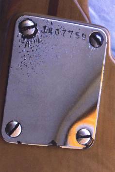 Bild vänster: Squier'52 Vintage Tele hals med datum. Bild höger: Halsficka med EX stämpel för Export.