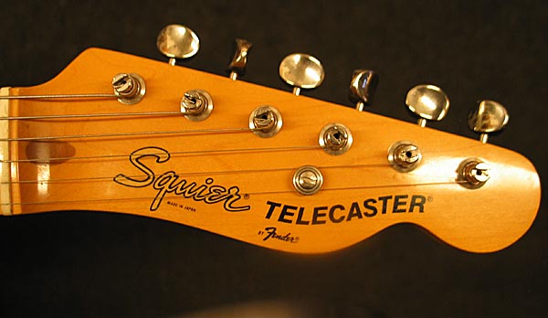 huvudet på den Amerikanska och Squier på den Japanska med en liten Fender logo
