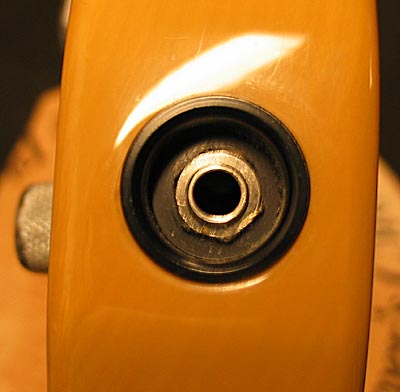 Bilden ovan visar kroppen utan plektrumskydd notera det frästa spåret för